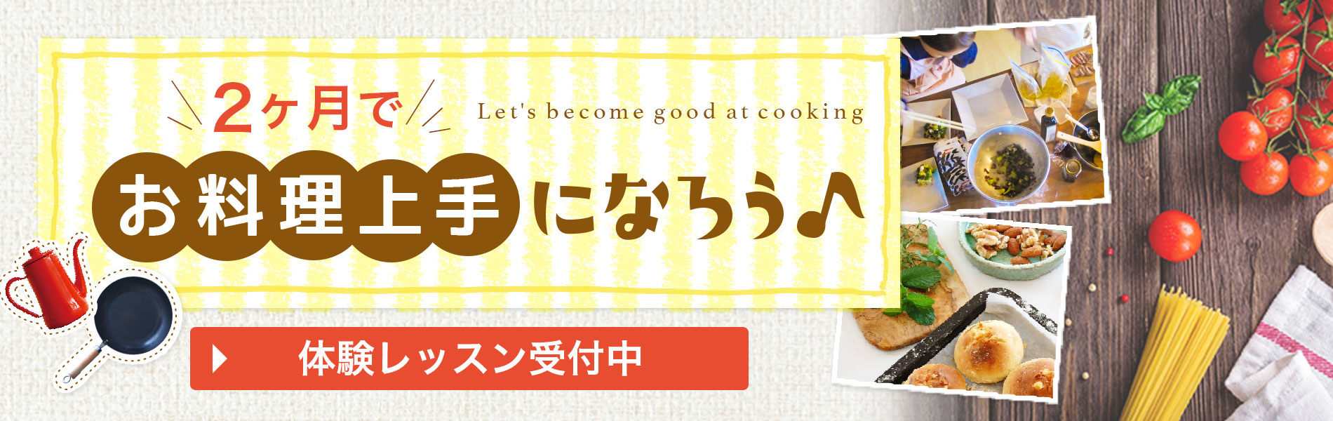 2ヶ月集中で料理を習得してもらえるように、無駄な内容を省きつつ、中身は濃くしています。